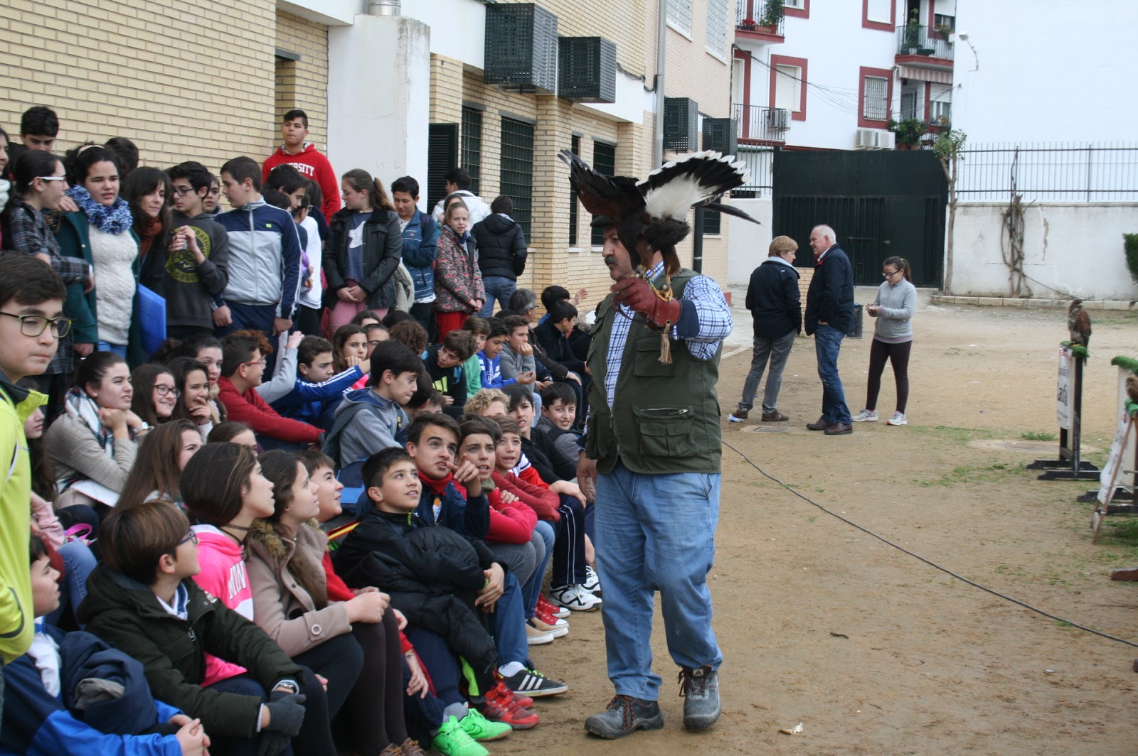El pasado viernes, el alumnado de 1º de ESO pudo disfrutar de una exhibición de aves rapaces en nuestro Centro, a cargo del vecino de nuestro pueblo y Concejal del Ayuntamiento Don Jorge Clérici, quien amablemente se ofreció a colaborar, dentro del Proyecto Escuela Espacio de Paz.
